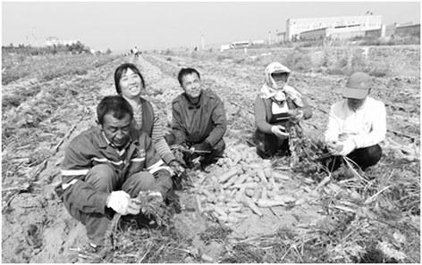 “园区胡萝卜到了收获的时日,我们便被雇佣来劳作,每天挣一百元,也不累。”正在神木县禾泰现代农业示范园胡萝卜标准生产基地拔萝卜的农民李敬喜(音)笑着告诉记者。