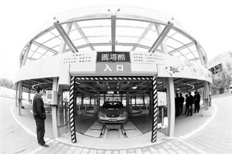 北京立体车库“样板间” 在位于首钢总公司内的北京静态交通研发示范基地内,十三种不同类型的停车设备和立体车库使这里成为立体车库的“样板间”。这些由首钢研发的停车设备和立体车库分别可以适应小区、医院、学校、公交场站等不同场地的不同需求,缓解“停车难”。图为10月27日,一名工作人员在演示将车辆停入双环型智能圆形塔库内。