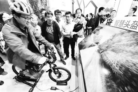 10月30日,观众在2016世界物联网博览会上体验“智慧头盔”。