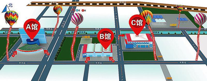 【展馆布局】 A馆(国际馆)、B馆(高新技术馆)、C馆(特色现代农业馆)、D馆(实用技术馆)