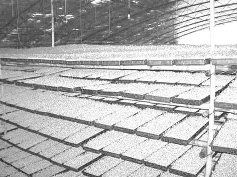 育苗盘采用轻质塑料制品为好。这样可减少栽培架的承重,同时木制盘也行。苗盘规格长60厘米,宽25厘米,高5厘米左右,以便于移动和采收。