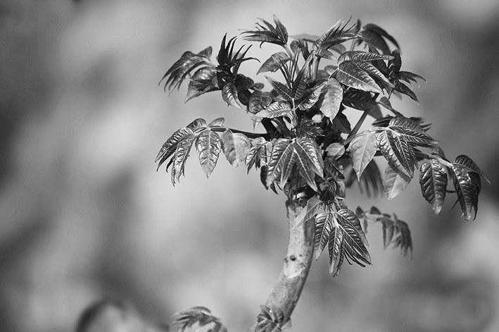 整形修剪 香椿春季整形修剪可与椿芽采收同时进行,根据树干长势情况而定。若树干长势过高则需对新芽进行摘心处理,以促其下部芽苞萌发;若树干高度合适则可保留新芽,木质化后将成为2-3个侧枝。这样树形成型后树干高、枝条大、树冠层面厚、通风采光好、采收面大、产量较稳定。对于主干长势良好的香椿树根茎部萌蘖条应及时清除,以减少养分无用消耗、主干生长健壮。