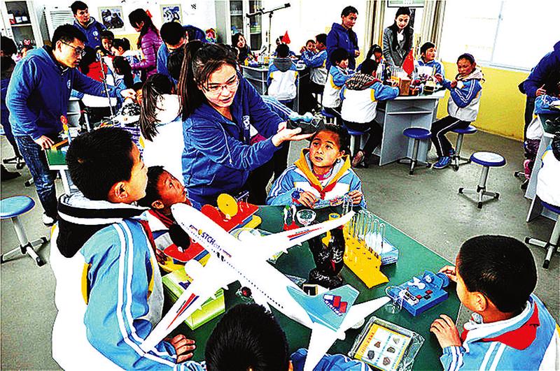 刘强 摄 3月21日,我省首个助力教育脱贫攻坚“圆山里孩子科技梦——科技小屋”在镇安县米粮镇熨斗九年一贯制学校启用。