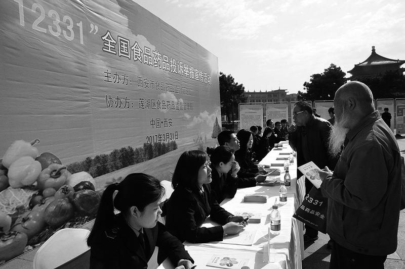 3月31日,西安市食药局和莲湖区食药局在钟鼓楼广场开展“12331,守护食品药品安全”主题活动。