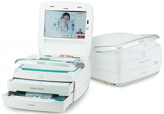 在触屏上,用户选择不同类型的症状,比如“叮咬”或者“脑震荡”,然后,Gale以问题形式引导用户,逐步确定具体问题。整个指导过程包括文字、图片,还有语音向导。通过触屏,用户还能与医生、护士进行视频对话。Gale的前部有个大按钮,用来启动远程医疗对话,或者它也可以设置成呼叫911或健康中心。