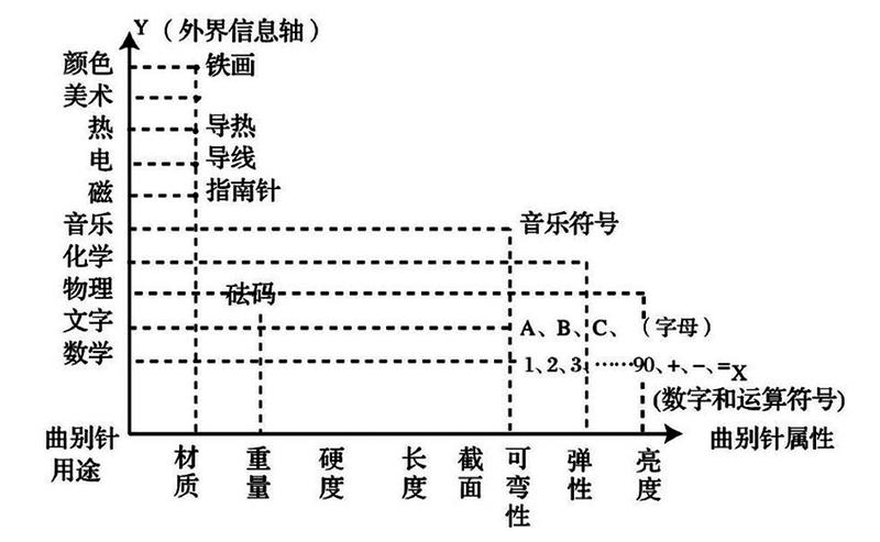 两轴相交就是信息场,各点相乘,进行信息交和,可见其用途是无穷无尽的。曲别针可以变成数字和加减乘除;可以变成英文、拉丁文、俄文字母组成各种语言文字;曲别针可以和各种酸类及其他的化学物质产生反应,制作成各种东西;