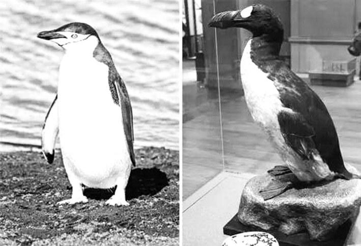 企鹅(左)与大海雀(右)都穿着“黑礼服”,但亲缘关系并不太近