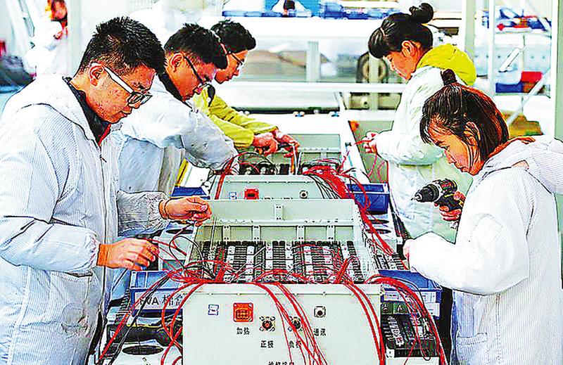 陕西华包生产厂商,助力全省新能源汽车产业聚集,生产的华星PACK电池包搭载陕汽轩德E9商用车使用时,可额定1.5吨载荷续航250公里,并循环使用3000次。2017年,该公司PACK电池包销售额超过4000万元。图为该公司新能源事业部技术人员样线。