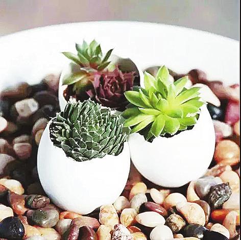 把沾有蛋清的鸡蛋壳放入清水中,然后再用浸泡过蛋壳的水去浇花。鸡蛋壳中的钙和磷都是植物最爱的肥料,植物吸收了它,只会越长越好。除此以外,鸡蛋壳还能做成创意盆栽,美观又好看。