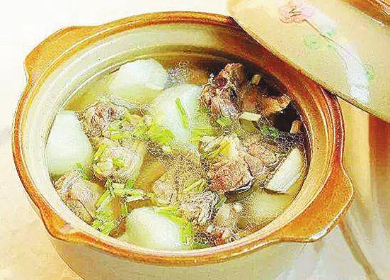 羊肉炖萝卜:李时珍在《本草纲目》中说:“羊肉能温中补虚”,补中益气,开胃健身,益胃气,养胆明目,治虚劳寒冷,王劳七伤。在冬天可与胡萝卜一起食用,但要注意羊肉不易与南瓜、乳酪、醋、竹笋、半夏、红豆一起烹调,易发生食物相克的情况。羊肉性温,能增加人体热量,驱赶寒气,抵御严寒,还可以修复胃黏膜,帮助调理脾胃。萝卜能消食化痰,能帮助肺病患者化痰疾,还可以预防动脉粥样硬化。