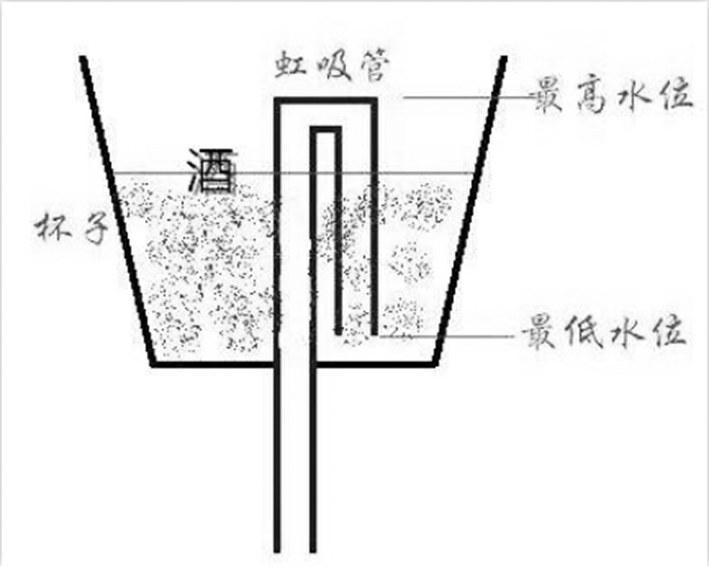 从实验中你大概已经发现了,只要水不没过中间的吸管,这个杯子就和普通的杯子一样。但是只要液体高于中间的吸管,液体就会自动流完。戒贪杯的意义就在于此。