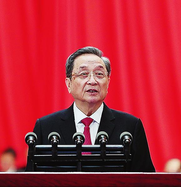 下午3时,汪洋宣布大会开幕,全体起立,高唱中华人民共和国国歌。