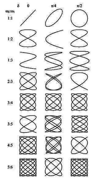 如果它同时在2个互相垂直的方向上做正弦振动,就和我们图片中的这样,那么2个正弦振动就会形成利萨茹曲线。
