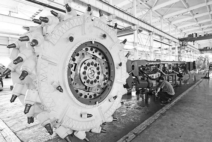 西安煤矿机械有限公司是我国采煤机设计、制造大型骨干企业,产品遍布全国27个省(区),并出口印度、孟加拉国、俄罗斯等国家。今年前8个月,该公司实现工业总产值4.8亿元,同比增长43.49%;实现营业收入4.5亿元,同比增长60.26%。图为9月7日,工人在总装配车间采煤机生产线上作业。