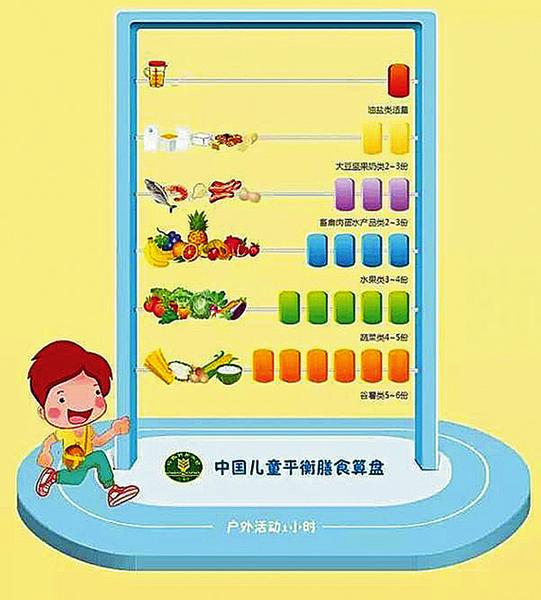 我们常说“少许”“适量”,很多家长很难把握量,《中国儿童平衡膳食算盘》中的可视化图形简单勾画了儿童平衡膳食模式的合理组合搭配和食物摄入基本份数,家长可结合自己的拳头、手掌心、手捧等来估算食物份量,更方便地对食物“量化”。