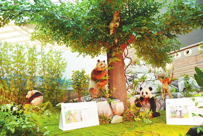 展板内容主要从秦岭大熊猫演化历史、科学研究、保护工作、文化创意等方面,通过大量图片、标本和实物,向公众全方位科普、展示秦岭大熊猫保护故事和科研成果。