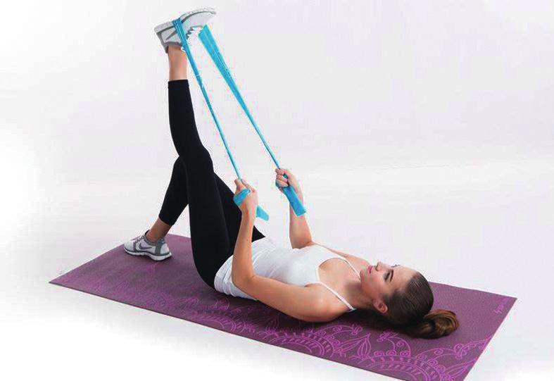 对普通人而言,弹力带最适合用来增强大肌肉群的耐力。比如练臀大肌,站立或俯身均可,将绳的一端固定在较低位置,另一端用脚踝绑带固定在一只脚上,呼气将腿向后向上抬起,保持1-2秒,吸气还原,换腿进行(如图);练胸大肌,不妨把弹力带绕到肩胛骨后,然后双手抓住来做俯卧撑。每块肌肉完成动作12-20次/组,2-3组/次,每周2-3次。练大肌肉群可选用粗大的弹力带,也可将粗带折成双股或多股来增加阻力。