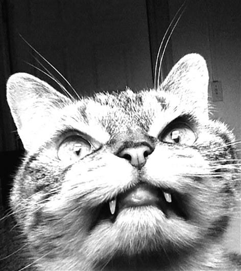 15岁的Loki是一只来自美国华盛顿州西雅图的暹罗混血猫,因其尖锐的獠牙和皱眉时腹黑的表情,被称为“吸血鬼”猫咪。