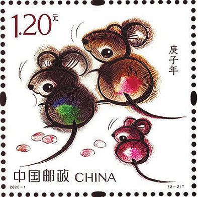 庚子鼠年生肖邮票第一图名为“子鼠开天”,取自民间传说“鼠咬天开”,萌动之鼠腾空跃起,咬破混沌,遂成宇宙,寓意国家取得了开天辟地、继往开来的巨大成就;第二图为“鼠兆丰年”,三只小鼠一副欢喜自得模样,寓意阖家欢乐,花生图案呈现一派丰收景象,寓意2020年五谷丰登。画面运用装饰小写意的画法,结合传统国画的渲染技艺,展现了生肖鼠的可爱萌动,预示着伟大祖国的繁荣富强。岁至庚子年,中国生肖邮票发行已经历了40个春秋,中国邮政始终坚持弘扬优秀文化,发扬工匠精神,精益求精地打造每套生肖邮票。如今,生肖邮票不仅承载着新春的美好祝福,更是与文创融合发展的媒介资源,已成为走向世界的文化名片,在新时代焕发着新的生机与活力。