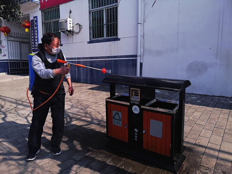 白马滩镇各行政村、各疫情防控点258名党员主动争做环境卫生“整治员”。他们戴上口罩清理村间巷道、房前屋后及门庭院落卫生,并坚持做好镇内日常消毒消杀工作,筑起阻断疫情传播的坚实“防火墙”。这种“硬核表达”坚定了全镇人民打赢疫情攻坚战的信心和决心。图为党员在进行日常消毒消杀工作。