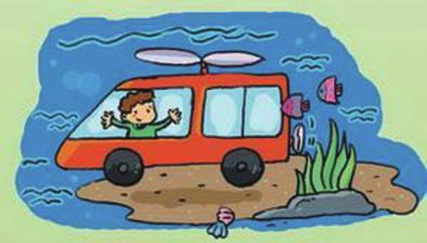 当你坐在驾驶室中,会发现方向盘旁有四个按钮。第一个是“海模式”,你按下它,汽车的轮子就会收起来,变成两个“水浪推动器”,让你在水面“开车”,按下两次,则可潜入海底,当潜水艇来用。它的轮子会自动装上履带,不仅在公路上可以流畅奔驰,在野外任何地方都可以流畅自如的奔驰。按下第三个按钮“空”,汽车后会立刻展开一对巨大的双翼,双翼上都装着开启强大的喷射器,时速可达一万公里。如果累了你还可以开启最后一个功能——自动托管,让电脑管家帮你开车。