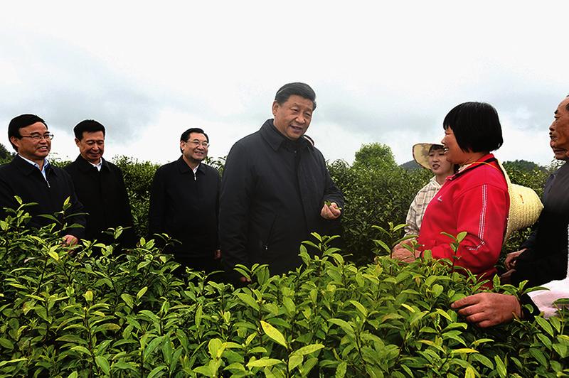 4月20日至23日,中共中央总书记、国家主席、中央军委主席习近平在陕西考察。这是4月21日,习近平在安康市平利县老县镇蒋家坪村女娲凤凰茶业现代示范园区,同茶农们亲切交谈。 新华社记者谢环驰 摄