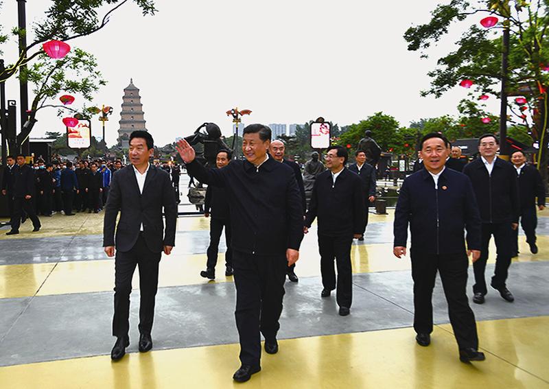 4月20日至23日,中共中央总书记、国家主席、中央军委主席习近平在陕西考察。这是4月22日,习近平在西安大唐不夜城步行街考察时,向游客挥手致意。 新华社记者谢环驰 摄 习近平希望陕西广大干部群众:只争朝夕真抓实干在新时代各项工作中取得新气象新作为