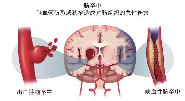脑卒中又称中风,是一种急性脑血管病变,是由于脑部血管突然破裂或者血管阻塞,导致血液不能流入脑组织,脑组织细胞缺氧,不能正常代谢,维持细胞功能,而引起局限性或全脑功能障碍的一组疾病,包括脑梗塞、脑出血、蛛网膜下腔出血,其中缺血性脑卒中占脑卒中发病的60-70%。