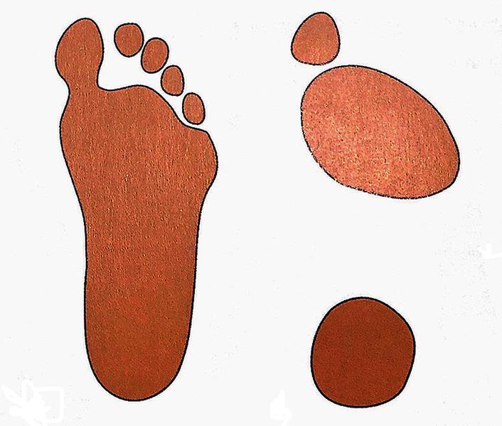 足部水印自测法 取坐姿,足底蘸水,双脚踩向地面,将重心压到脚上(超重的人可以不用起立),然后双脚离开,通过留下的印记判断自己的脚型。
