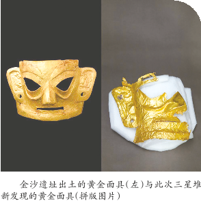 传说二 三星堆的人“搬家”到了金沙? 此次三星堆新发现的黄金面具“惊艳亮相”,眼尖的网友一眼看出:这跟金沙的黄金面具是同款!不止黄金面具,金沙金冠带和三星堆金杖上的纹饰、玉璋、玉凿、象牙……两个遗址有不少文物“撞款”。所以我们可以认为三星堆的人“搬家”到金沙了吗?