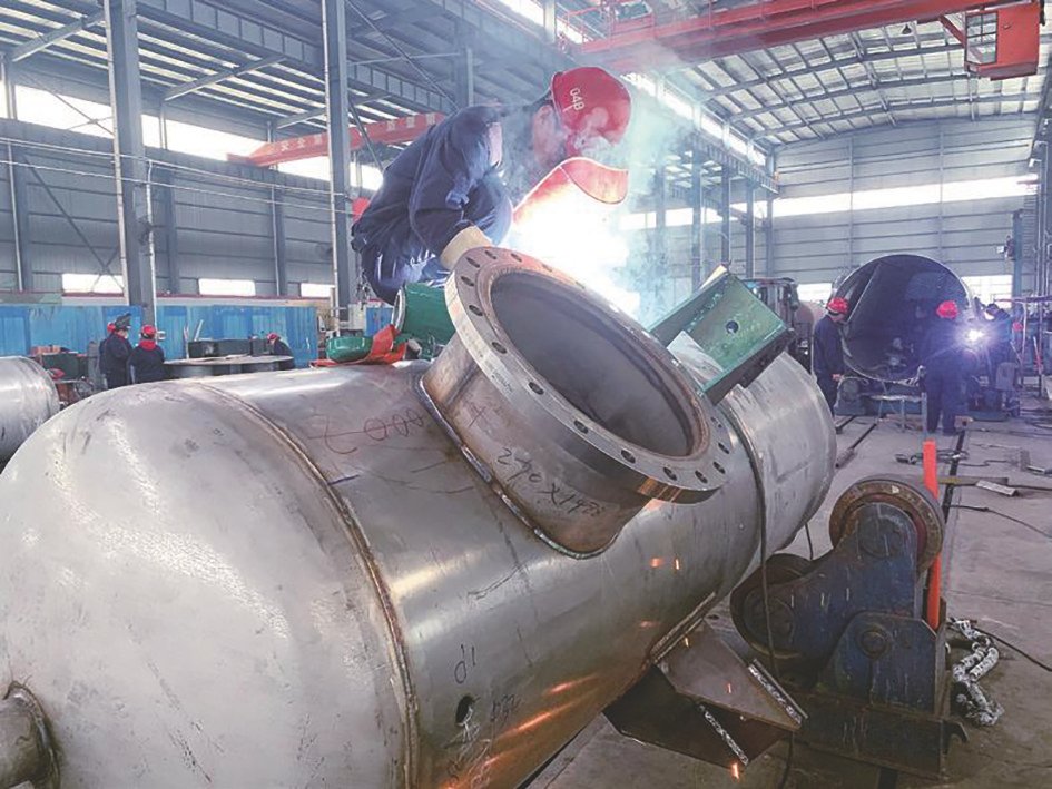 近日,宝鸡高端装备产业园的渭滨区怡鑫金属加工厂将总价值近100万美元的产品销往挪威,现在正在赶制新订单。图为工人们正在紧张忙碌地生产。
