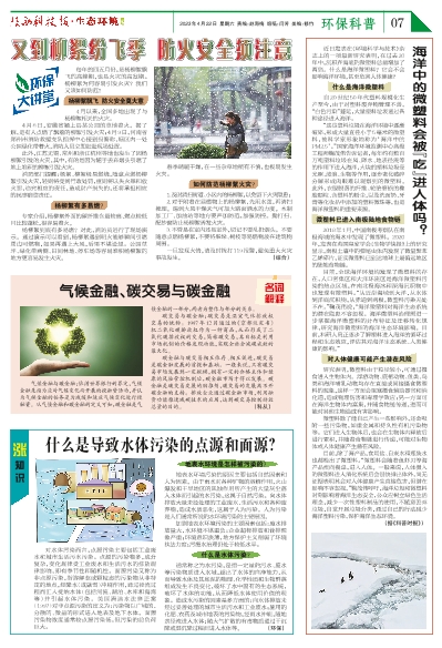 目前,除了海产品,食用盐、自来水和瓶装水也都检出了微塑料。“微塑料会随着鱼虾贝等海产品流向餐桌,进入人体。一般来说,人体摄入的微塑料进入消化系统后会很快排出体外,尚无证据表明其会对人体健康产生直接危害,但潜在影响不容忽视。”鞠茂伟呼吁,海洋垃圾和微塑料时刻影响着海洋生态安全,公众应树立绿色生活理念,减少一次性塑料制品的使用,不随意丢弃垃圾,自觉开展垃圾分类,通过自己的行动减少海洋塑料污染,保护海洋生态环境。