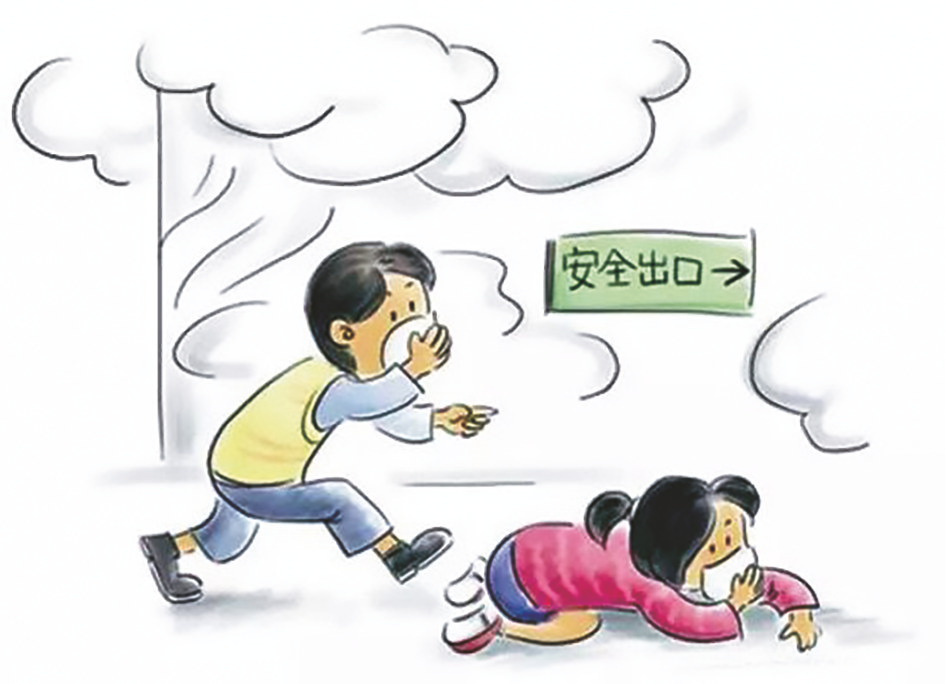 在充满烟雾的房间和走廊内,由于烟和热气上升,在离地板近的地方,烟雾相对少一些。逃离时,被困人员最好弯腰使头部尽量接近地板,必要时匍匐前进。