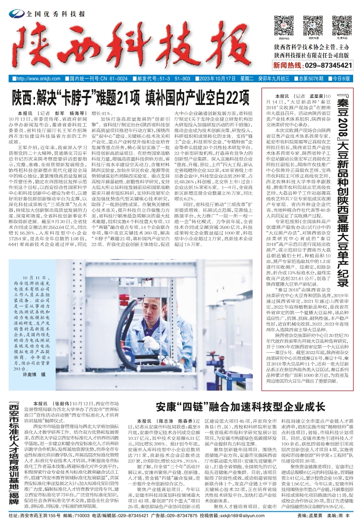 陕西:解决“卡脖子”难题21项填补国内产业空白22项