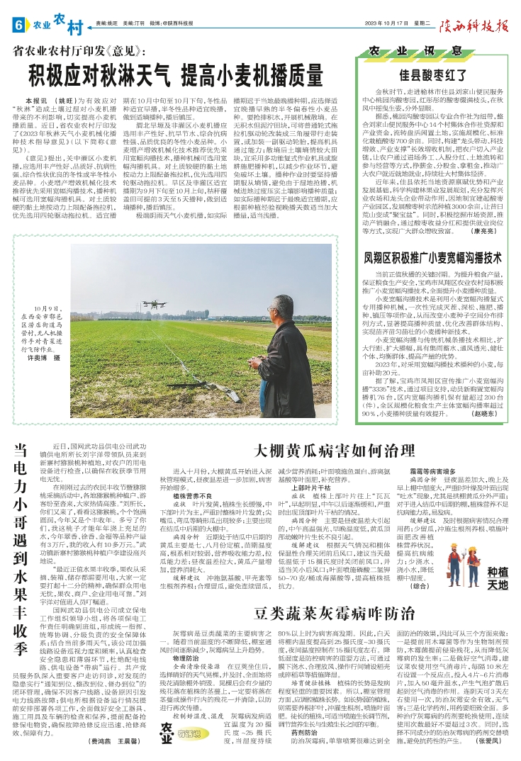 积极应对秋淋天气 提高小麦机播质量