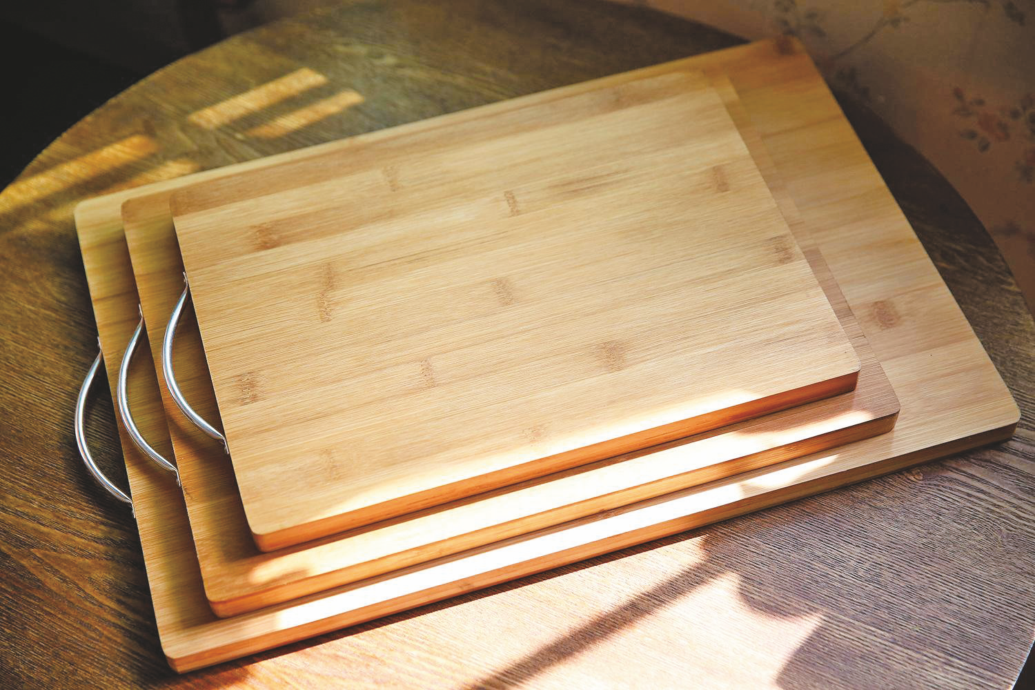 竹制菜板是另一种常见的选项。竹子比木头材质坚韧,更耐磨损,再加上吸水性没有木质菜板那么高,不容易发霉。但竹制菜板的缺点在于比较坚硬光滑,对于切菜者的刀功要求更高,且容易造成刀具的损坏,不适合剁肉、砍骨头等操作。