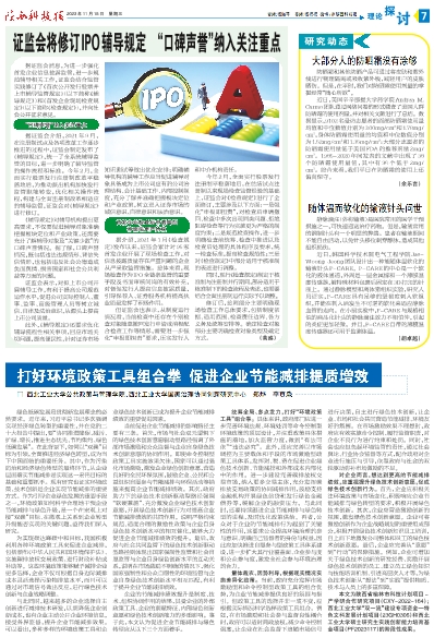 打好环境政策工具组合拳 促进企业节能减排提质增效