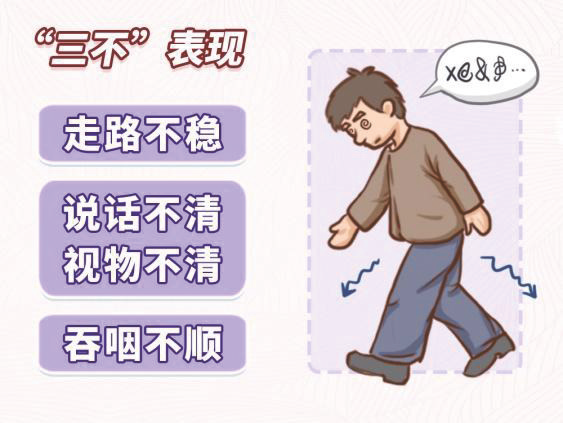 它们称为“三不”,包括不清、不稳、不顺。所谓不稳,就是走路摇晃、走路不稳。不清的话,包括说话不清楚,有时候看东西复视,视力不够清晰。不顺就是指吞咽不顺,病人中后期可能出现吞咽障碍。这三个“不”是它的共性。