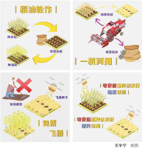 长江流域是我国水稻和油菜的主产区。水稻适宜生长在温暖湿润的环境,而油菜则是喜冷凉、抗寒力较强。因此,为了充分利用耕地资源,农民往往在水稻收获后的冬闲田上种植油菜,实现“一田多收”,称为“稻油轮作”。