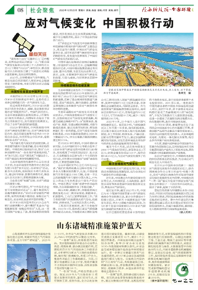 生态环境部日前发布了《中国应对气候变化的政策与行动2023年度报告》,详细介绍了2022年以来中国应对气候变化的新进展,反映了重点领域控制温室气体排放、适应气候变化、碳市场建设、政策和支撑保障以及积极参与应对气候变化全球治理的进展。