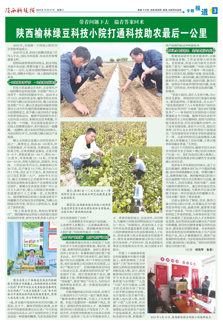陕西榆林绿豆科技小院打通科技助农最后一公里