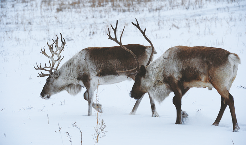 驯鹿广泛分布于欧亚、北美大陆的北部及西伯利亚南部的寒冷地区,一般栖息在寒温带针叶林中,处于半野生状态。体形较大,全身长着厚密的粗毛,头长而直,嘴较粗,眼较大,颈粗短,鼻孔大,无鼻镜,鼻孔长有短绒毛,尾短,蹄子宽大。雌雄皆有角,雌性的角比雄性小。驯鹿长着马头、鹿角、驴身、牛蹄等特征,俗名“四不像”。
