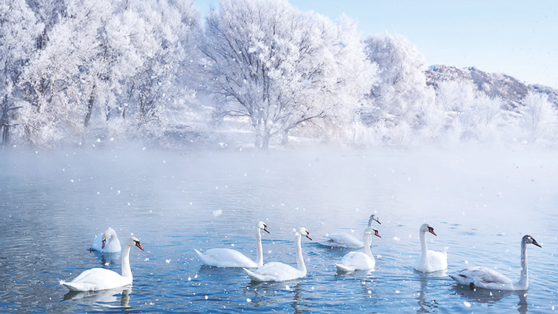 天鹅泉湿地公园又名英塔木天鹅栖息地保护区,位于英塔木乡下赫勒克村伊犁河北岸,占地50亩,属地下温泉,冬季不结冰,是河谷仅有的疣鼻天鹅越冬栖息地。从上世纪九十年代开始,每年10月初至次年4月,天鹅在此栖息,数量已从最初的几只发展到如今的百余只。