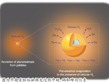 研究团队关注了硫族元素(硫、硒和碲)的同位素。通过第一性原理计算发现,在早期太阳系星云氢气未完全散去的情况下,星云物质凝聚形成星胚导致熔融挥发会使得星胚富集轻硫、重硒和重碲同位素;而核幔分异不会导致明显的硫、硒和碲同位素分馏。这一结果与地球的观测结果十分吻合,即地球相较于其初始物质具有偏轻的硫同位素组成,但具有偏重的硒和碲同位素组成。进一步模拟表明,星胚挥发丢失大约90%的硫、硒和碲可以同时定量解释地球的低硫同位素比值、高硒和碲同位素比值,而“后期增生”的作用可忽略不计。