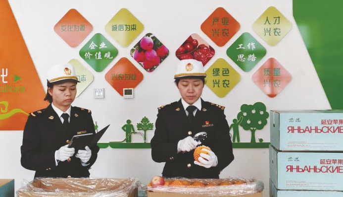 延安苹果口感脆、糖度高、果型佳,目前种植面积331万亩,产量455万吨,居我省第一位。针对延安苹果首次出口中亚国家,延安海关向企业详细解读《中国水果出口哈萨克斯坦植物检疫要求》,指导企业优化原料果入库、加工、包装等生产流程,建立并有效运行产品溯源及质量控制体系。提升业务流转与监管效率,简化注册材料,推广行政许可“线上”办理,高效完成出口果园和包装厂注册登记;设立特色农食产品“绿色通道”,实行提前预约、优先办理、随到随检,围绕哈方关注的检疫性有害生物进行现场查验,合格后及时出具植物检疫证书。