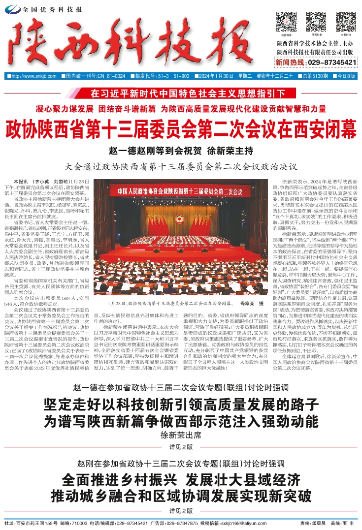 坚定走好以科技创新引领高质量发展的路子 为谱写陕西新篇争做西部示范注入强劲动能