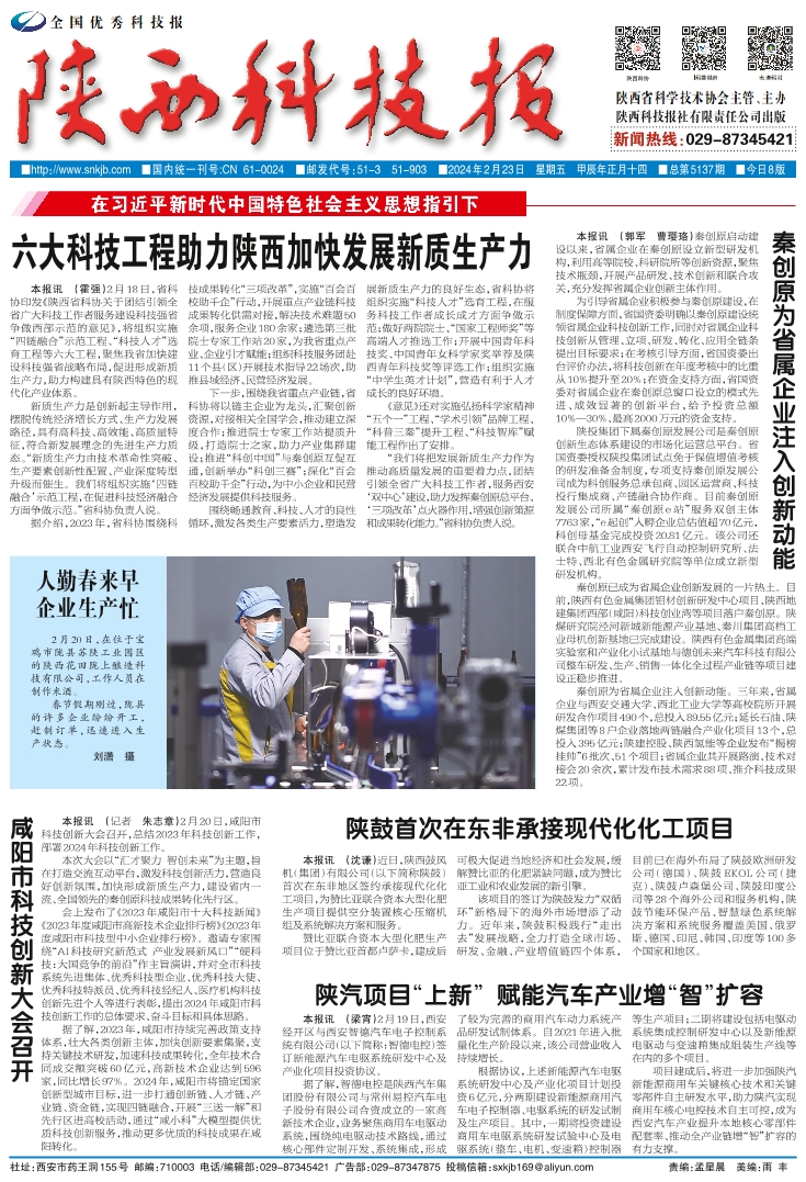 六大科技工程助力陕西加快发展新质生产力