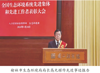 1月24日,生态环境部在北京召开全国生态环境系统先进集体和先进工作者表彰大会,榆林市生态环境局被评为“全国生态环境系统先进集体”,党组书记、局长高光耀代表全国生态环境系统西北片区在大会上作交流发言,从“坚持全局思维、以品牌党建领航绿水青山,坚持系统思维、以齐心协力共筑绿水青山,坚持法治思维、以严密法治守护绿水青山,坚持辩证思维、以金山银山换取绿水青山”四个方面介绍了榆林生态环境保护方面的经验及成绩,榆林生态环境铁军的真抓实干、优良作风受到部省领导及兄弟单位的充分认可和高度评价。