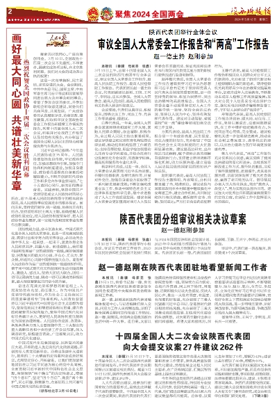 十四届全国人大二次会议陕西代表团 向大会提交议案27件建议262件