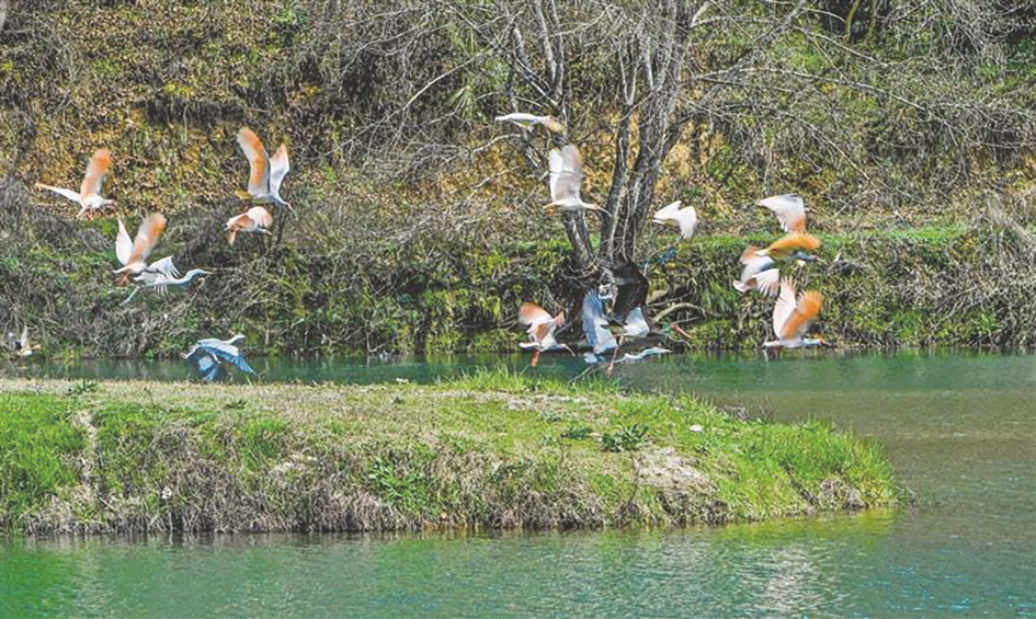 近日,成群结队的朱鹮、鹭鸟在汉中市西乡县峡口镇牧马河上游飞翔,成为一道亮丽的风景线。据了解,今年,这里已有147只朱鹮“安家落户”。